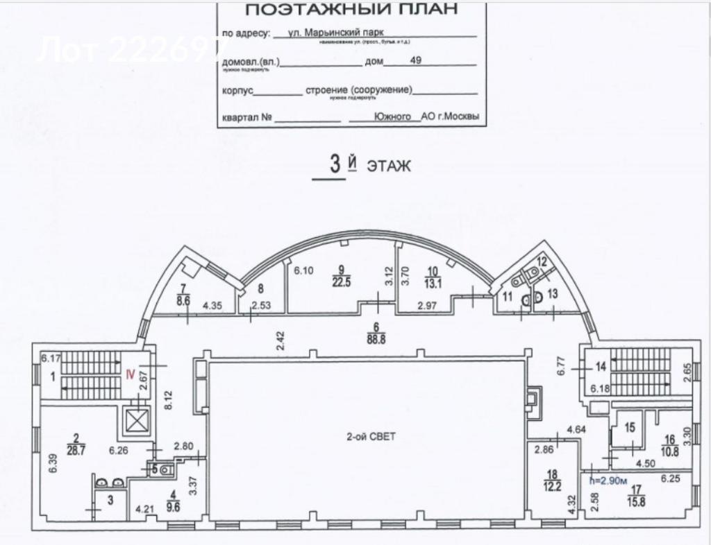 Лот № 222697 Сдается помещение свободного назначения 263 м2 на третьем этаже. Грузовой лифт На первом этаже супермаркет "Пятерочка" (до лета 2026) Цена 2000 руб/м2